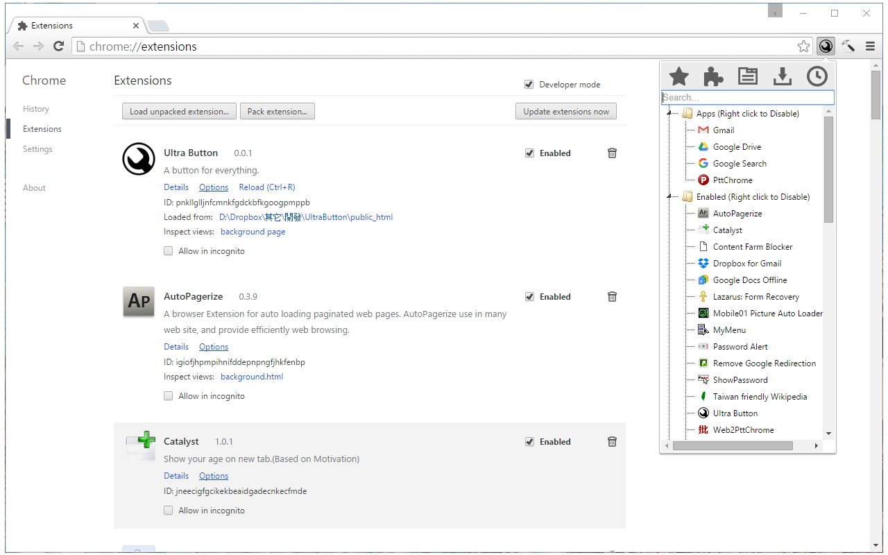 您现在能够在一个按钮中,使用大多数浏览器的功能 包含: 书签,扩充功能,下载管理,历史纪录以及窗口标签